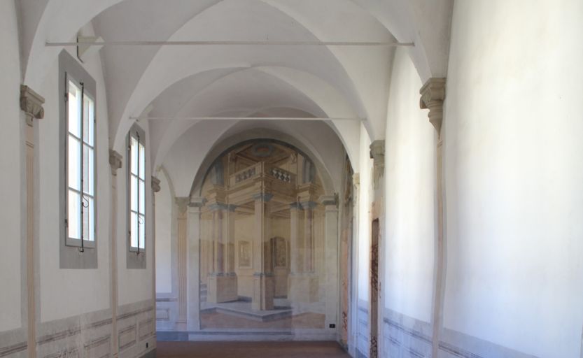 Und dann ist da noch der Kreuzgang, ein Juwel der Renaissance, das der Abtei im 15. Jahrhundert hinzugefügt wurde. Umgeben von klösterlicher Umgebung ist das ein Ort von außergewöhnlicher Schönheit. Die weitläufigen Korridore und Räume des Klosters sind mit faszinierenden Trompe-l'oeil-Dekorationen, feierlichen Wappen und Fresken erfundener Landschaften geschmückt und entführen Sie in eine Welt der Fantasie und Kontemplation.