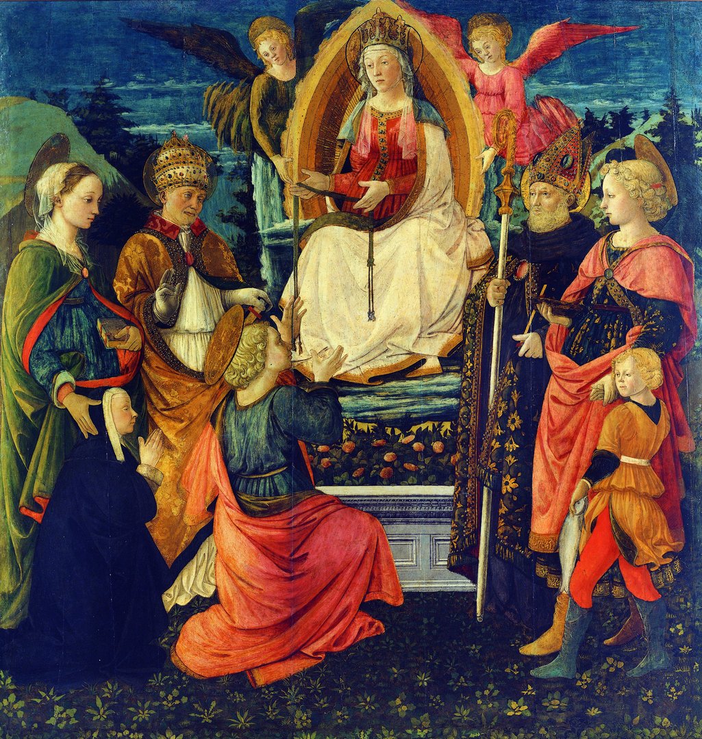La historia de Lucrezia y Filippo, escandalosa para la época, nos ha llegado a través de Vasari: Filippo Lippi conoció a Lucrezia Buti, una monja en el monasterio de Santa Caterina, en 1456, mientras trabajaba en el panel de la "Virgen entregando el Cinturón a Santo Tomás" y se enamoré inmediatamente de ella. Insistió en que ella fuera su modelo para el cuadro. Independientemente de su condición religiosa, durante la procesión del Cinturón Sagrado, Filippo secuestró a Lucrezia, según relata Vasari: "Y con esta ocasión (del cuadro) enamorándose más, hizo entonces tanto por medios y prácticas, que hizo extraviar a Lucrezia por las monjas y se la llevó el mismo día que iba a ver mostrada la faja de Nuestra Señora, reliquia venerada de aquel castillo" (Vida de Fra' Filippo Lippi).